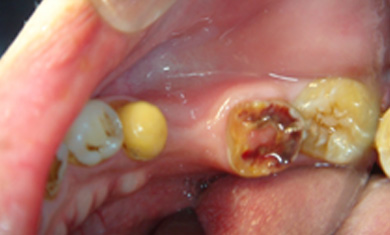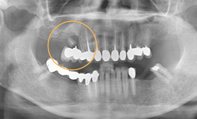 骨板萎縮 - 隨著缺牙的時間越久,齒槽骨的吸收越大吸收到極至,甚至有下顎骨體因外傷就產生斷裂之可能