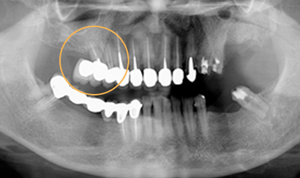 懸臂牙橋導致牙齒斷裂 ( 對側無牙 )