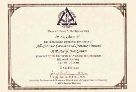 Alabama大學全瓷冠特別課程證書
